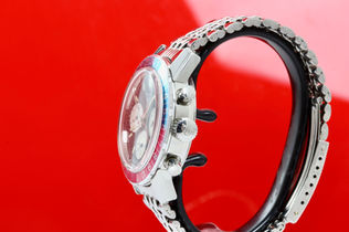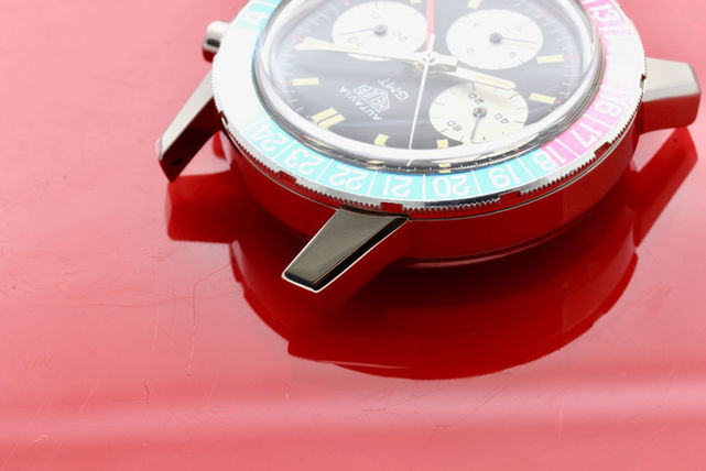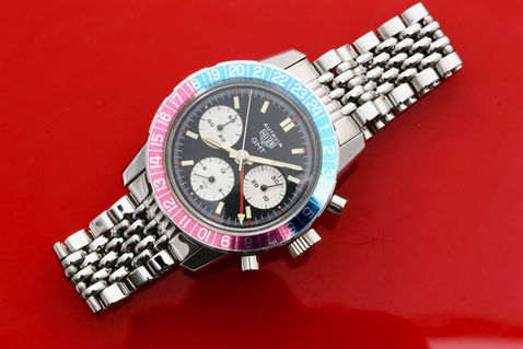 Heuer Autavia reference 2446c GMT in very nice and honest condition. MK2 execution which means slightly bigger subdials, white central seconds hand, polished minute/hours hands, smooth pushers and specific bezel. Case showing normal wear and still retaining its original shape and bevelled edges/surfaces. Amazing bezel with still very bright colors. New plexi fitted, fresh seals in pushers and crown. Dial and hands in lovely condition with all original tritium still present. Movement is running very strong and accurate, come with 2 years warranty. This watch is available and comes on a vintage and time correct beads of rice bracelet (non Heuer signed), perfectly complimenting the watch. If you would have any further interest or want to buy this watch, please let me know by email.