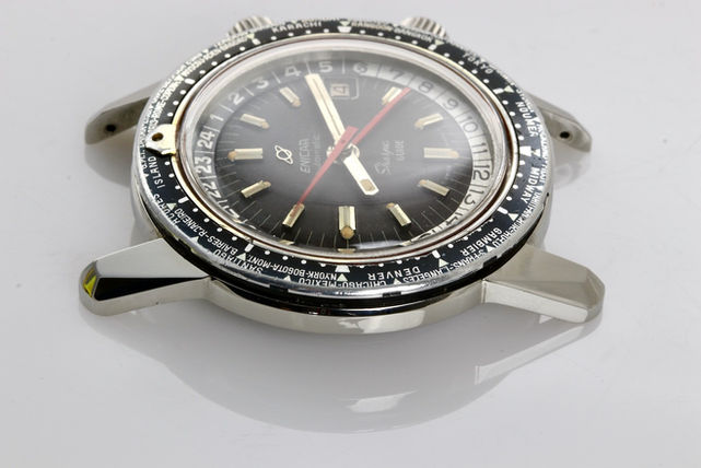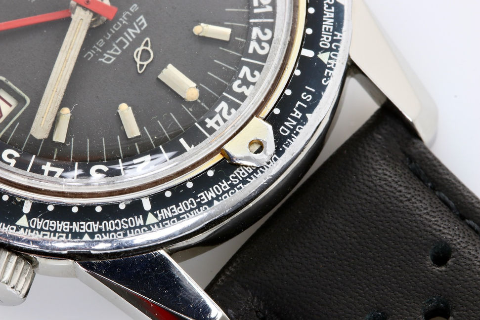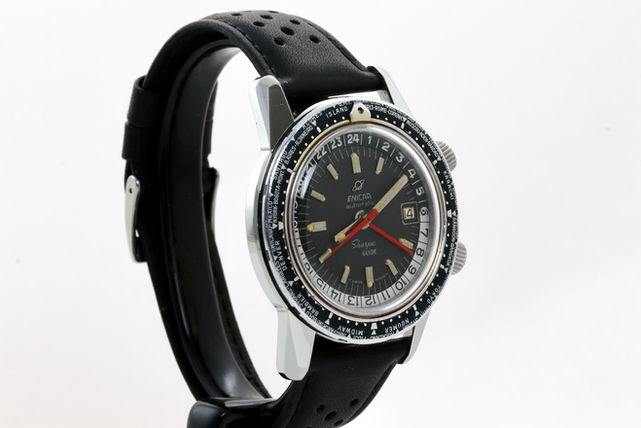 Enicar Sherpa Guide with nice patina. This watch received a full movement service and comes with 2 years warranty on the movement function. Case, bezel, dial and hands all in nice condition with charming patina. Dial is going dark chocolate brown. Original crowns still present. Comes on a matching abcoro racing strap. If you would have any further interest or want to buy this watch, please let me know by email.